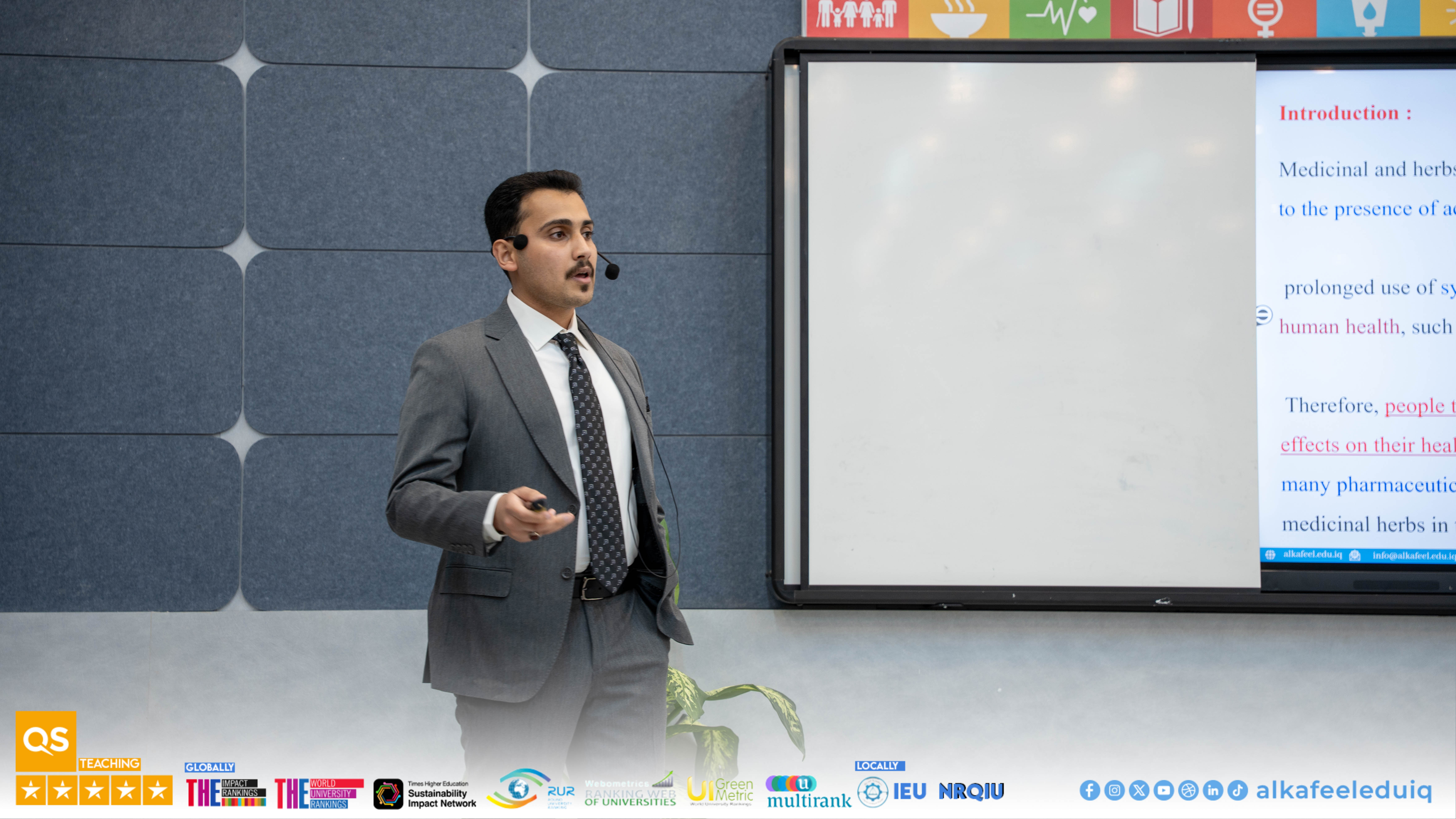 The sessions were attended by the University President, Prof.Dr. Nawras Muhammed Shaheed Al-Dahan, the Vice-Chancellor for Scientific Affairs, Prof.Dr. Nawal Ayed Al-Mayali, and the Dean of the College of Pharmacy, Asst. Prof. Dr. Saad Mashkoor Waleed Al-Ziyadi, faculty members, professors, and academic experts.
