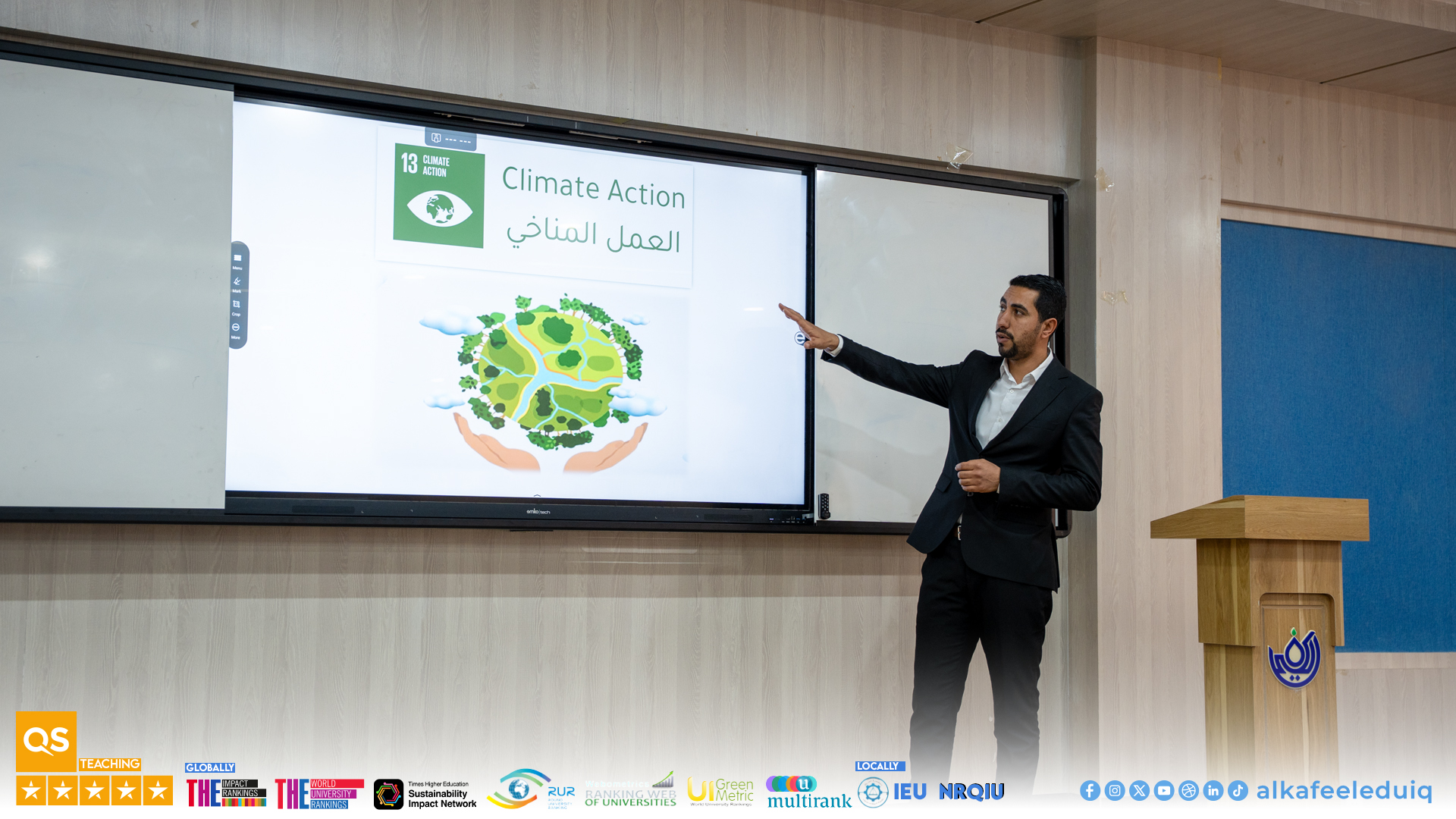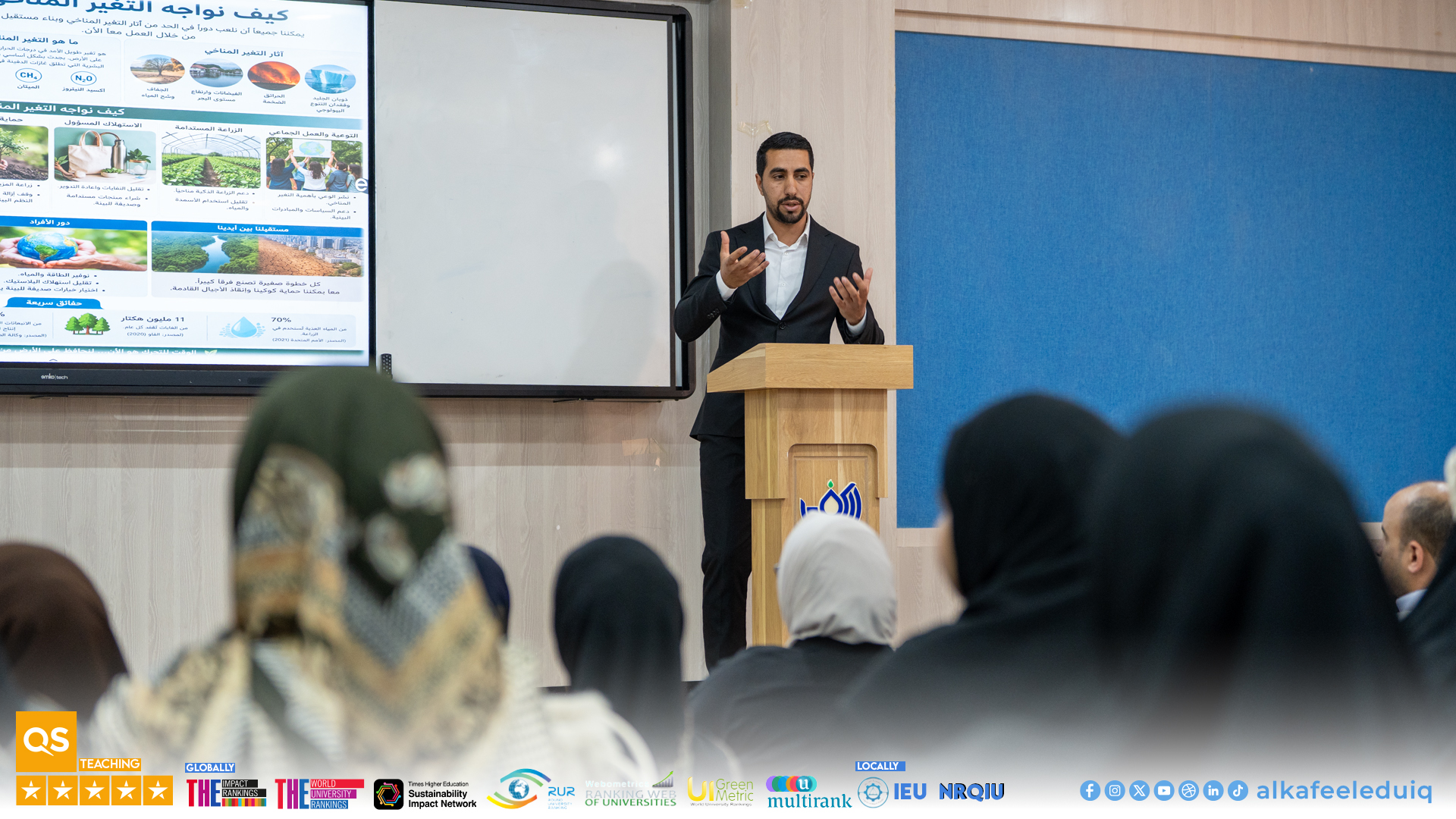 The Lifelong Learning Center at University of Alkafeel organized a scientific lecture : "Climate Change," delivered by Asst. Lect. Ali Abdul Jalil Naji, Head of the Agriculture Section at the university. The lecture, held on Monday, 6 April 2026, was attended by a number of students and those who ae interested in environmental issues as part of the activities of the Second University Sustainability Week.