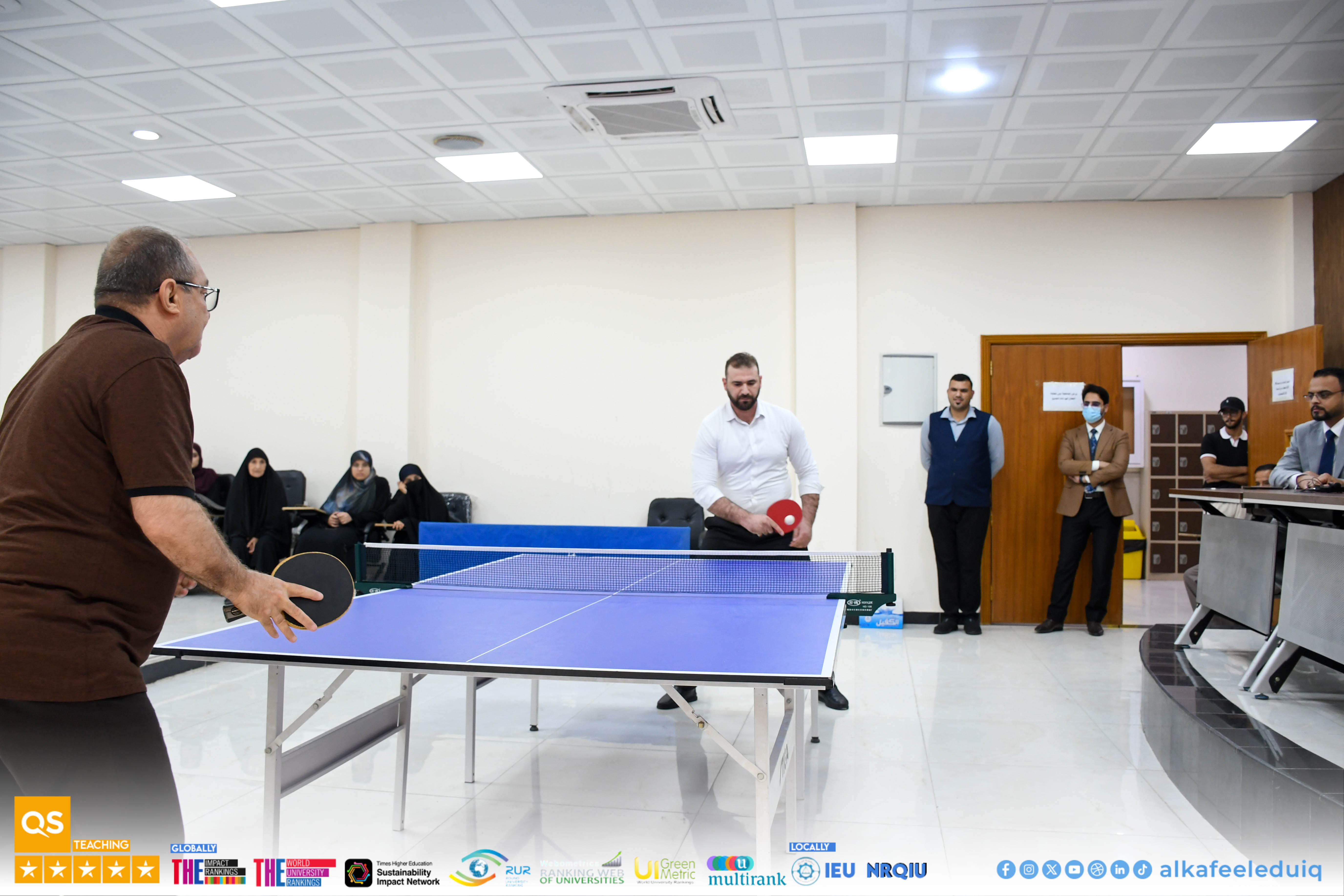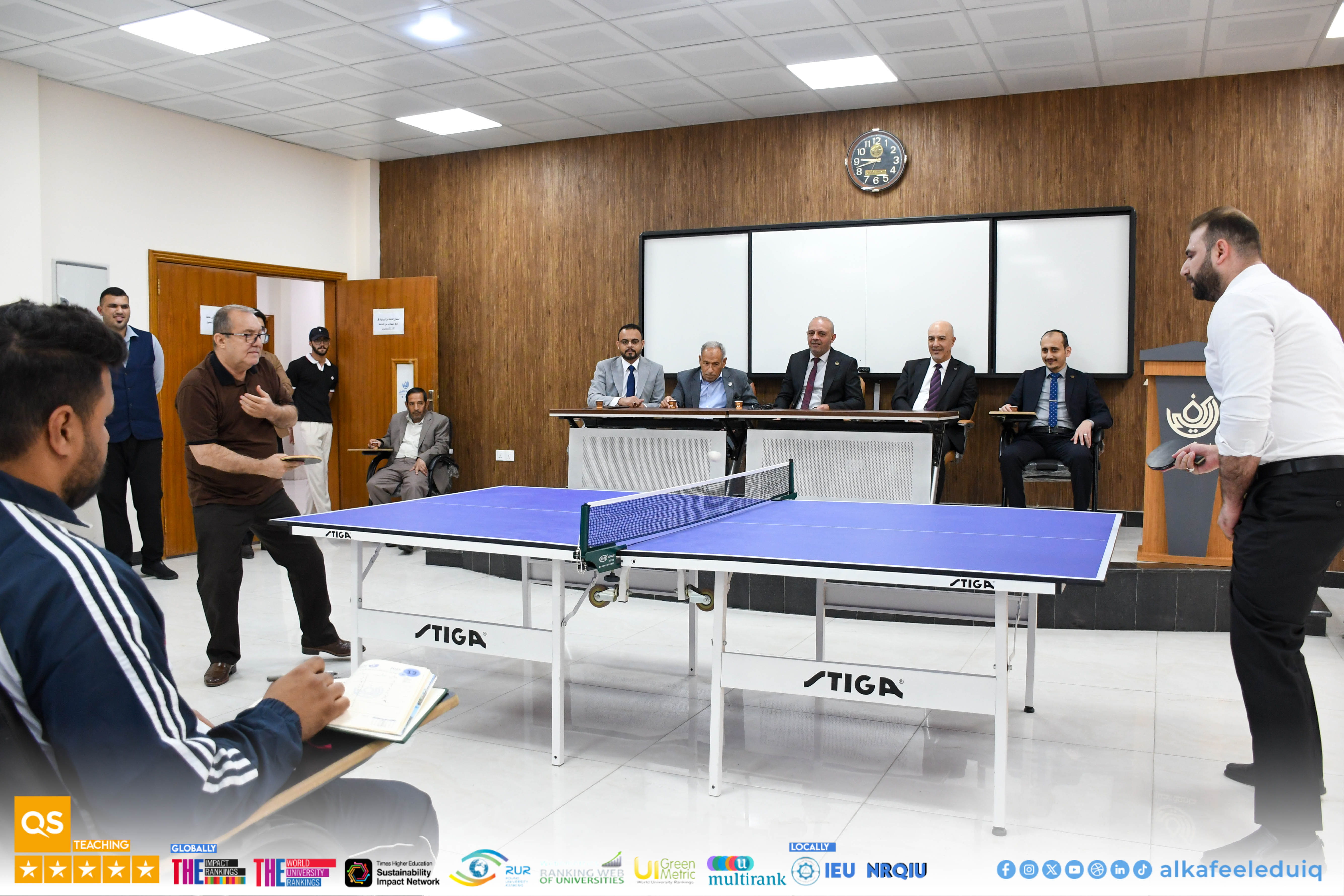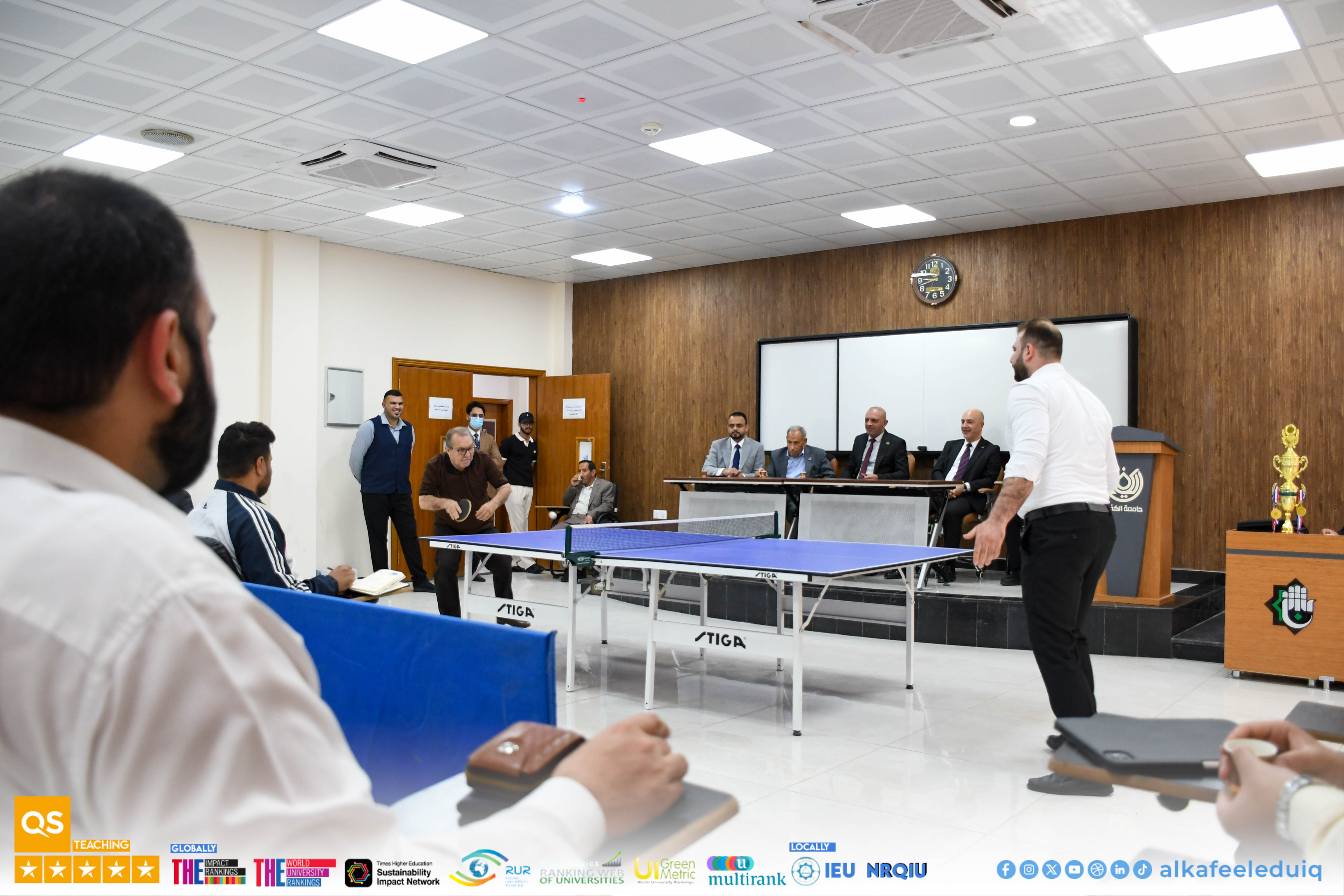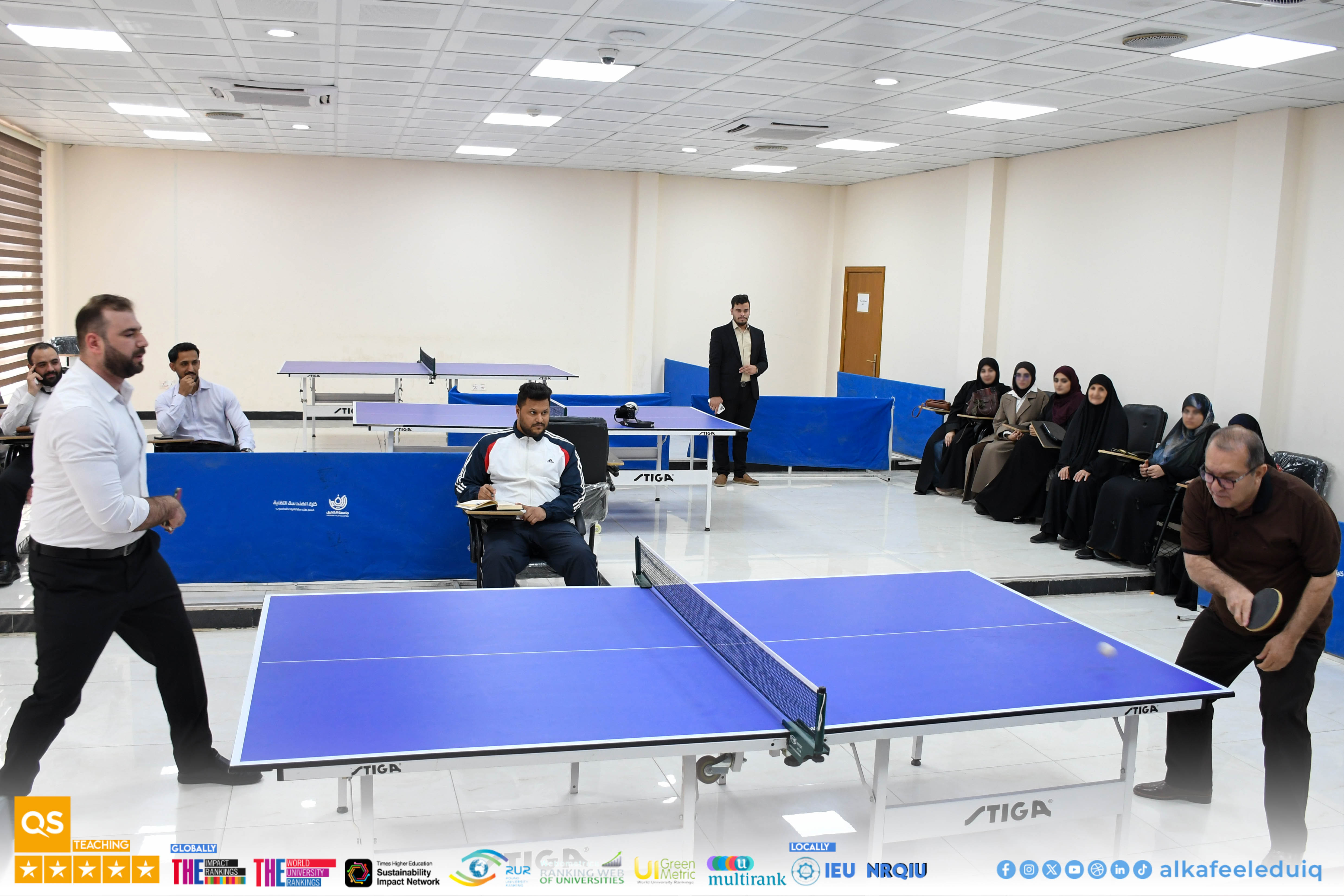 The Student Activities Department at University of Alkafeel organized the finals of the Faculty Table Tennis Championship, attended by a number of faculty members and staff, under the supervision of the department director, Asst. Lect. Ali Hatem Al-Karawi, on Sunday, 12 April 2026.