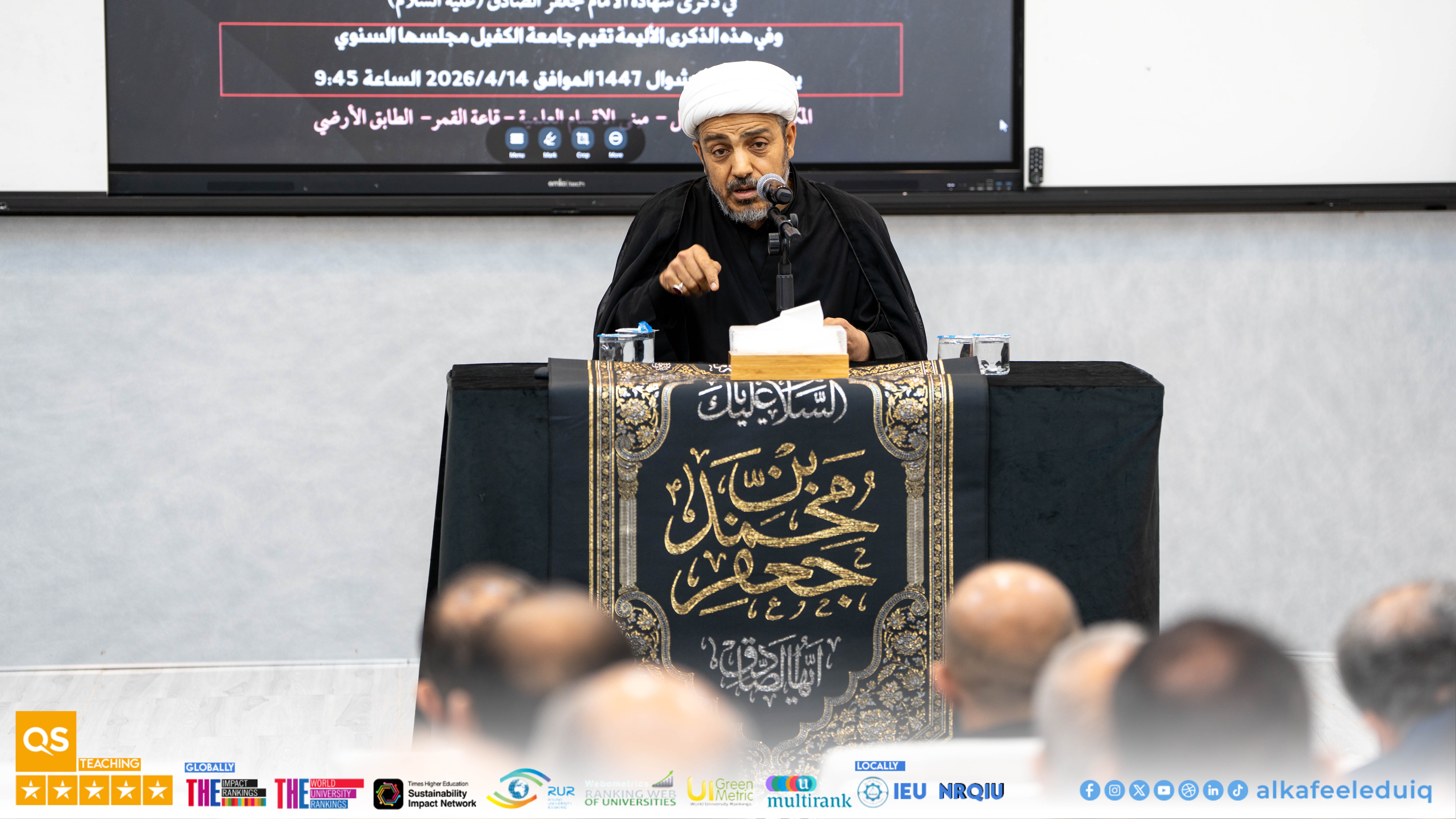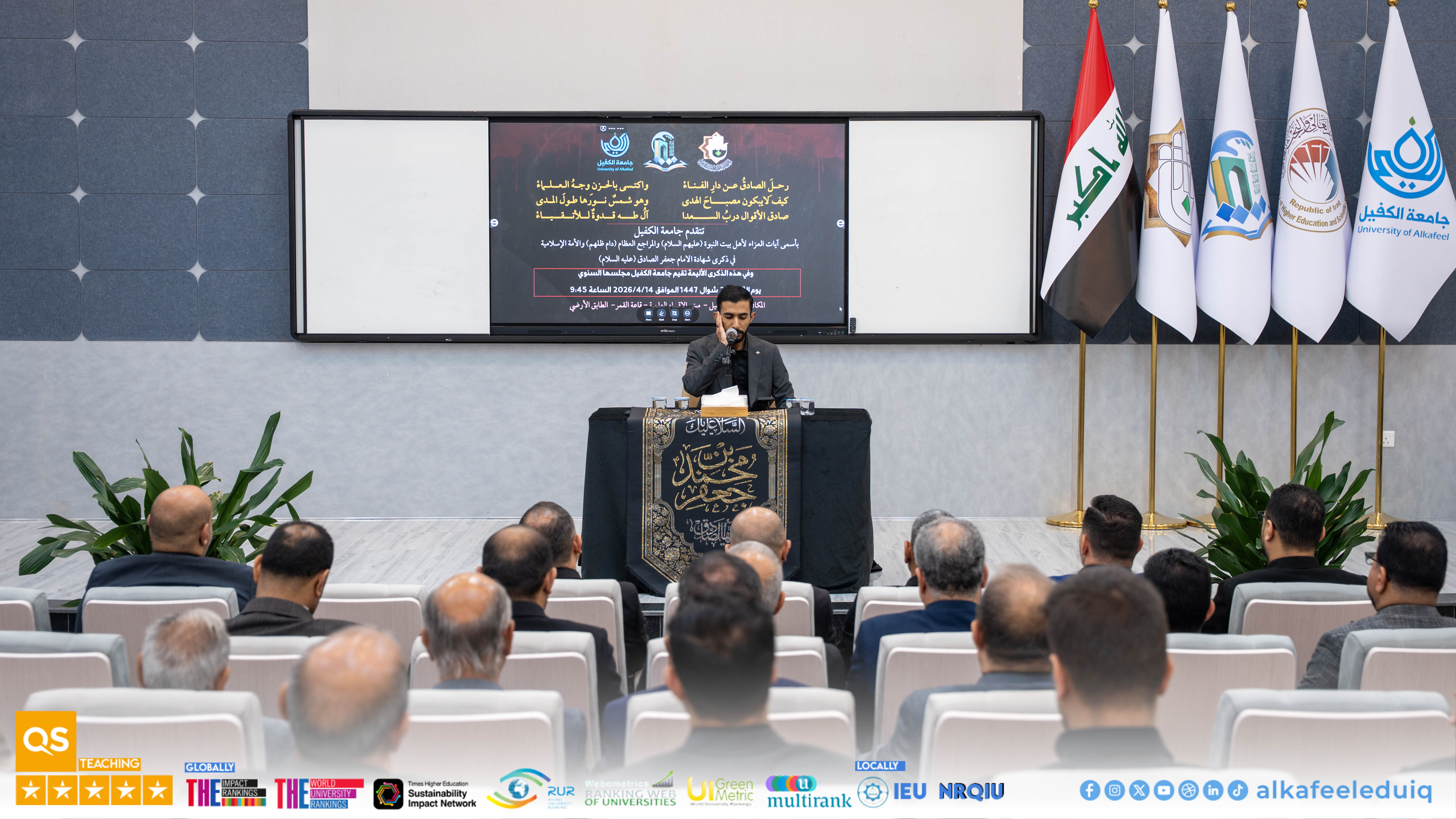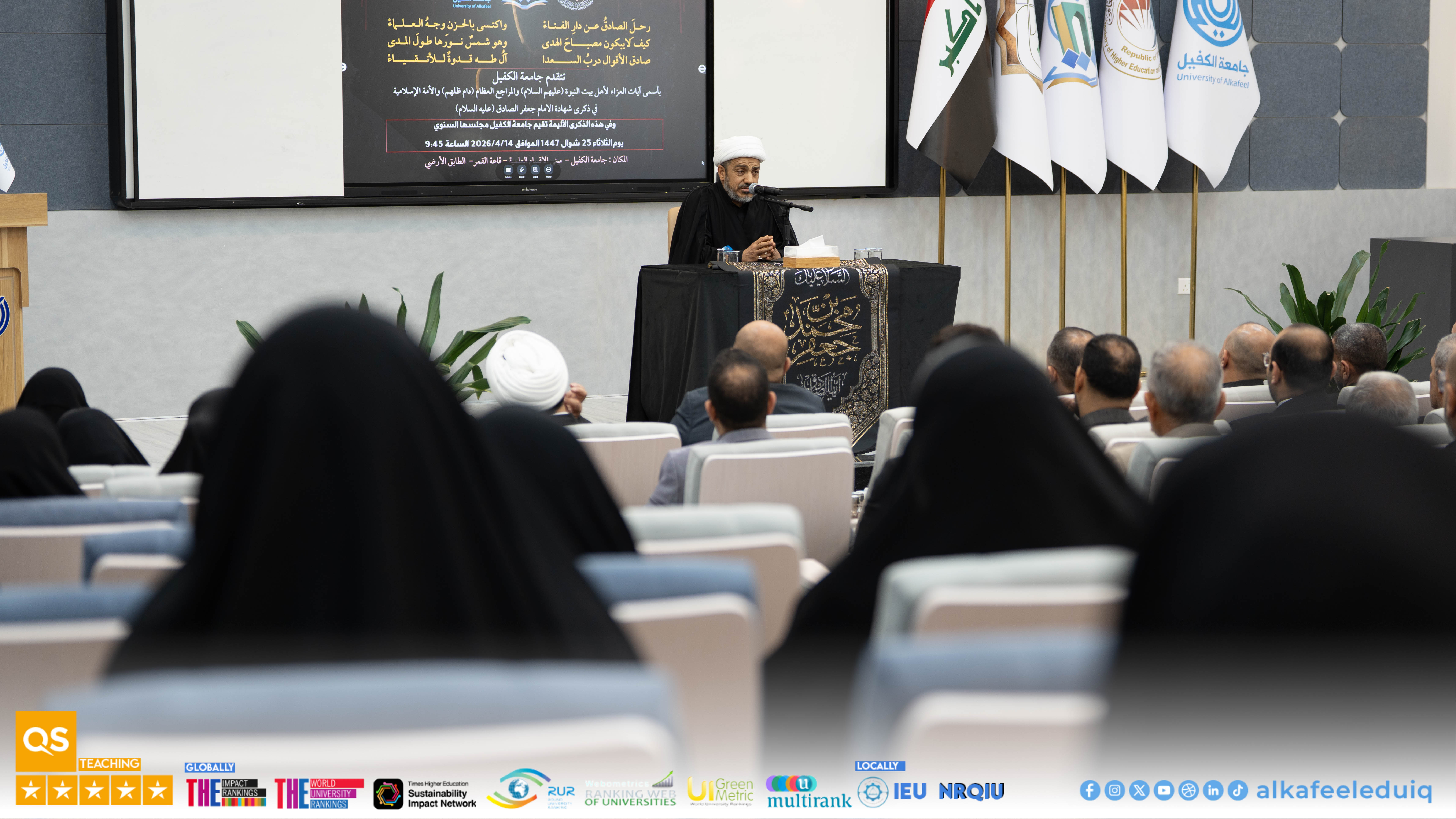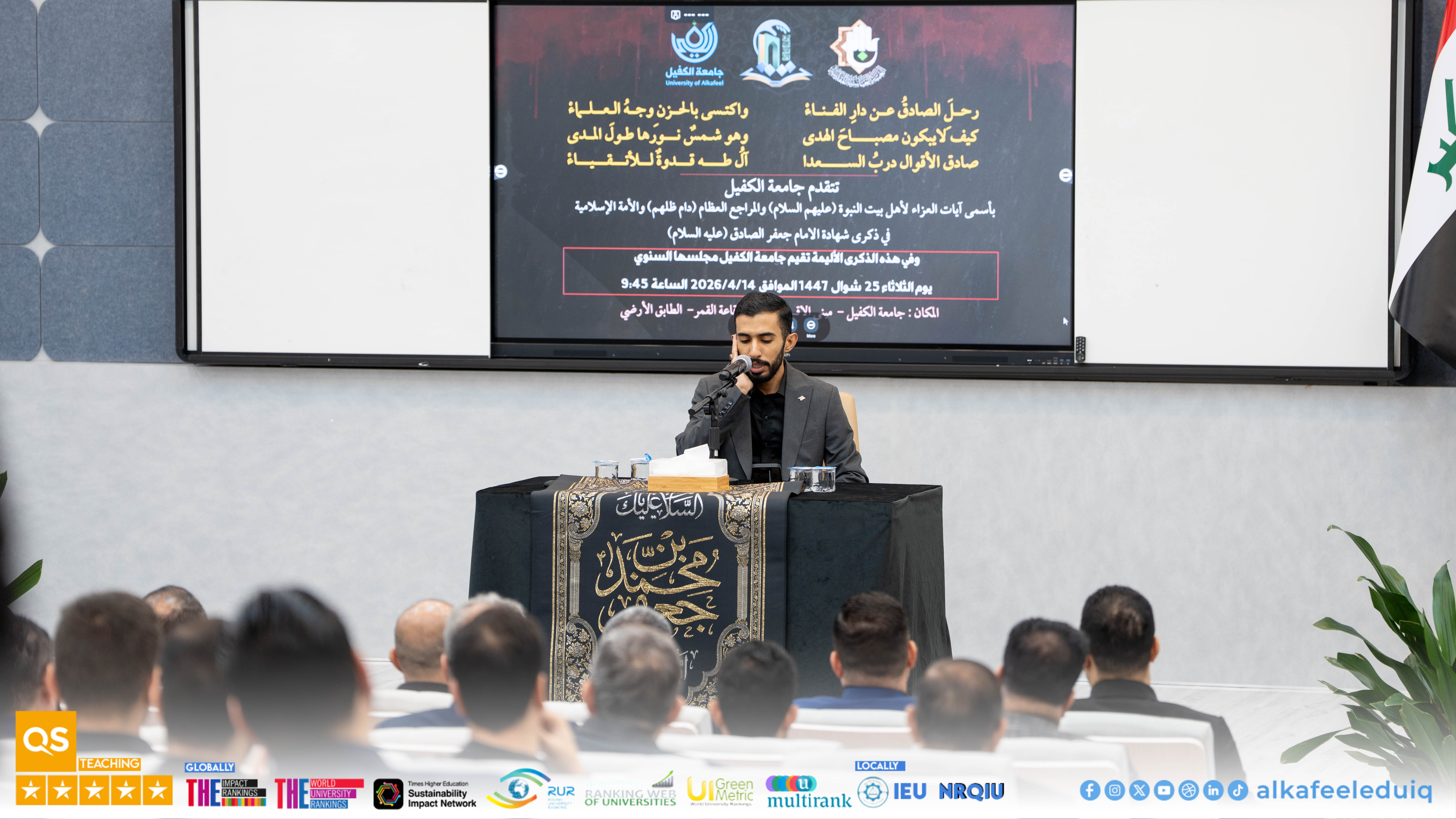 The Department of Psychological Guidance and Educational Orientation at Al-Kafeel University held a mourning session in Al-Qamar Hall to commemorate the martyrdom of Imam Ja'far al-Sadiq (peace be upon him) on Tuesday, 14 April 2026.
