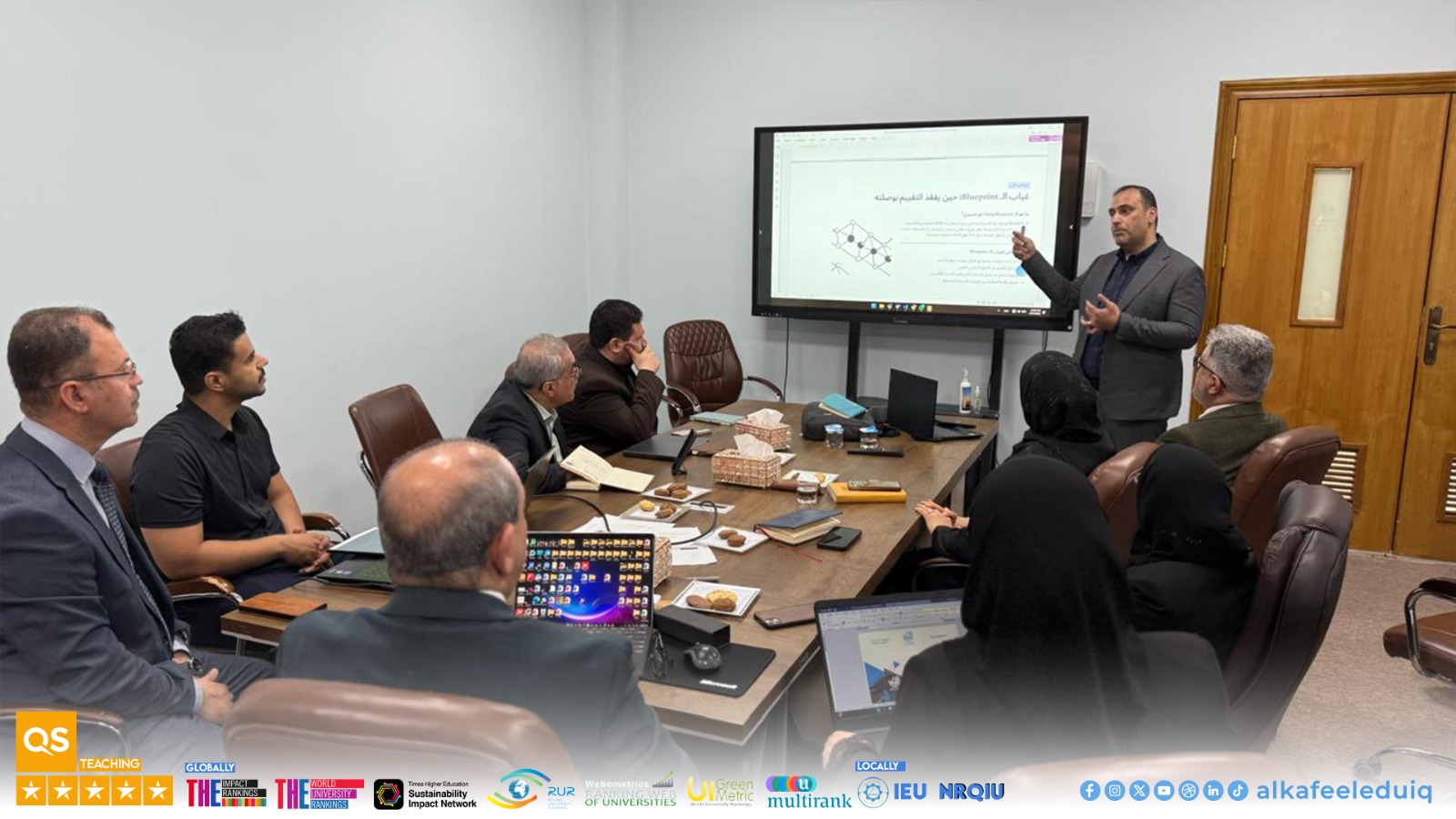 Prof.Dr. Alaa Al-Nasrawi from the College of Medicine at Kufa University presented the updated OSCE Exam Application program and explained its implementation mechanisms and its role in enhancing the accuracy and objectivity of clinical skills assessment. The attendees emphasized the importance of learning from successful experiences in this field to contribute to developing assessment methods and improving the quality of medical education. The meeting concluded with several recommendations : studying the adoption of the OSCE program, developing clinical assessment methods, strengthening cooperation with the College of Medicine at Kufa University, and continuing to adopt modern teaching and assessment methods.