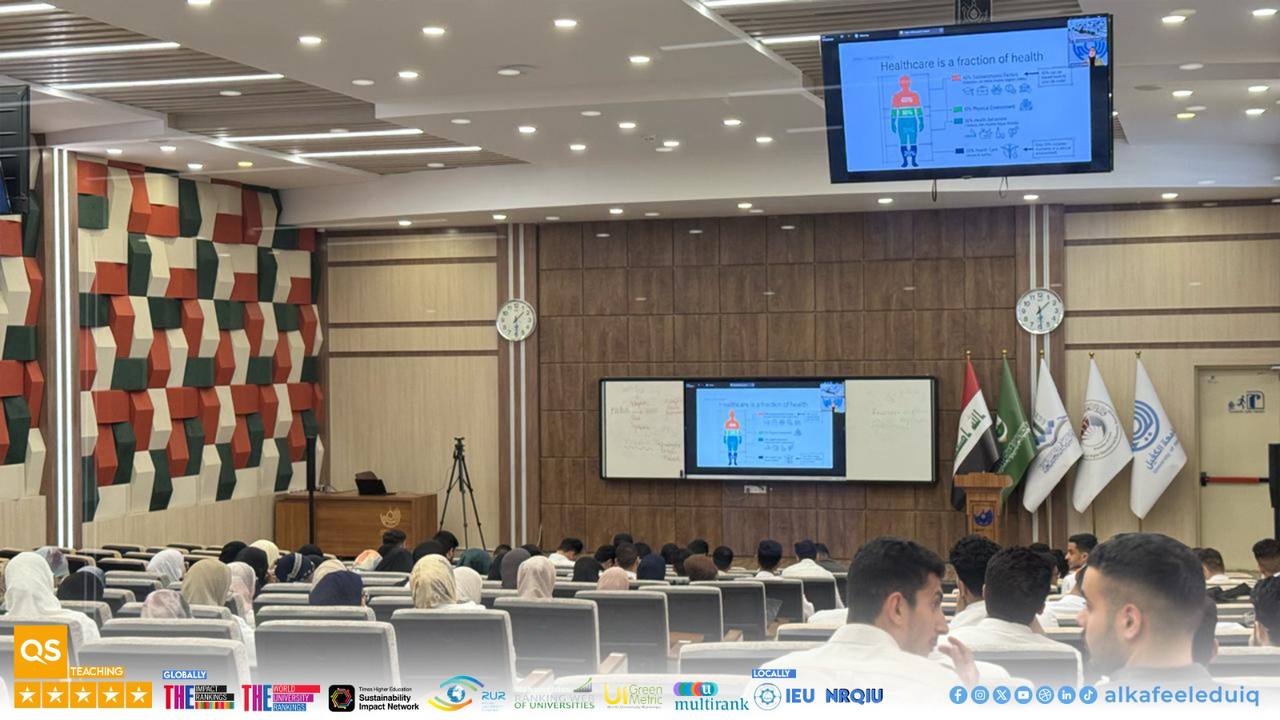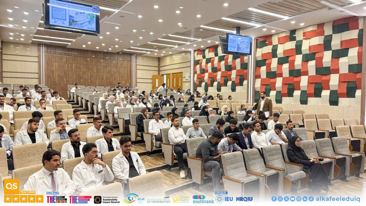 The College of Medicine at University of Alkafeel , in collaboration with Oklahoma State University, held a joint scientific lecture : "Global Health and Evidence-Based Medicine," presented by Dr. Hala Al-Mousawi on Tuesday, 14 April 2026.
