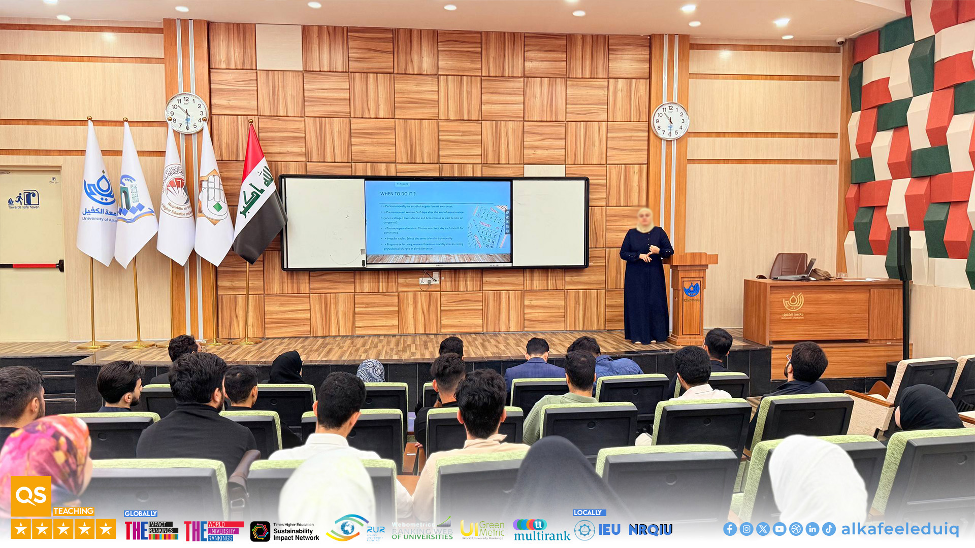 An awareness lecture on self-examination for the early detection of breast diseases was organized by the College of Medicine at University of Alkafeel . The lecture, “Steps for Self-Examination for Early Detection of Breast Diseases,” was presented by Dr. Farqad Falah Hassan Al-Khalidi on Monday, 20 April 2026. The lecture aimed to raise the women awareness of the importance of breast self-examination, introduce the mechanism for early detection of pathological changes, and encourage regular monitoring of their health to reduce delays in diagnosing breast diseases.