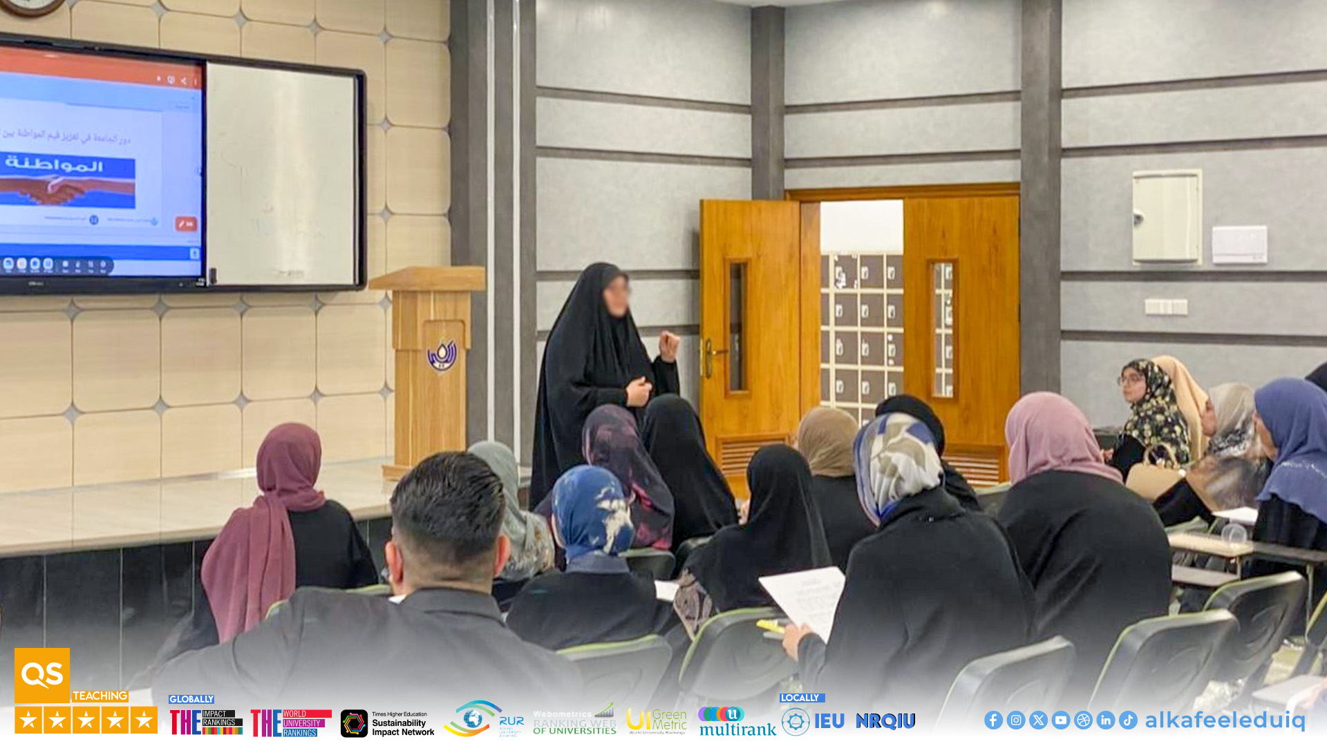 The lecture was presented by Asst. Lect. Zainab Habib Jaafar, who addressed the importance of the role the university takes to instill the citizenship values. She emphasized that the university institution is not limited to providing scientific knowledge but also contributes to developing their awareness and strengthening their national belonging.